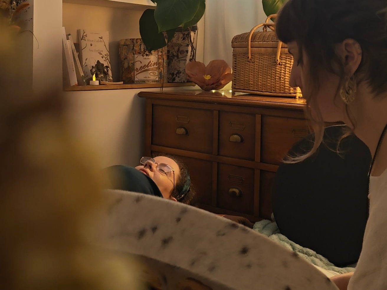 tu peux vivre ta séance allongé.e ou assis.e,